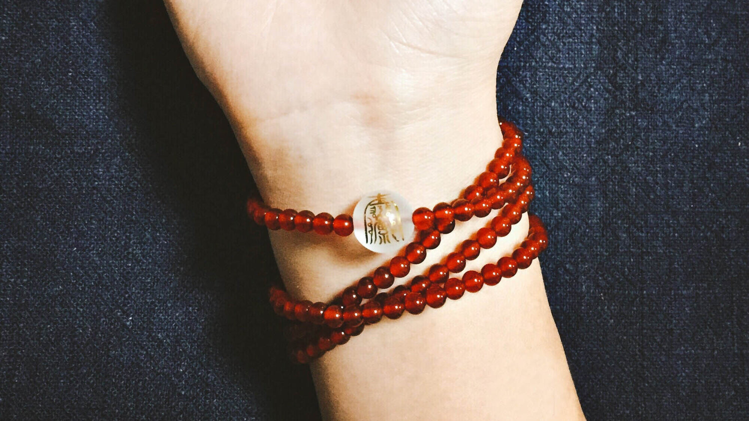 Red Cinnabar 108 Bead Mala Necklace, 108 Bead Mala Wrap Bracelet (P)
