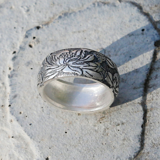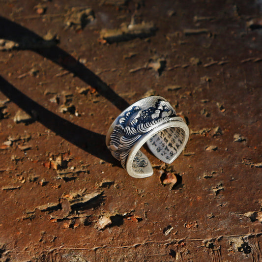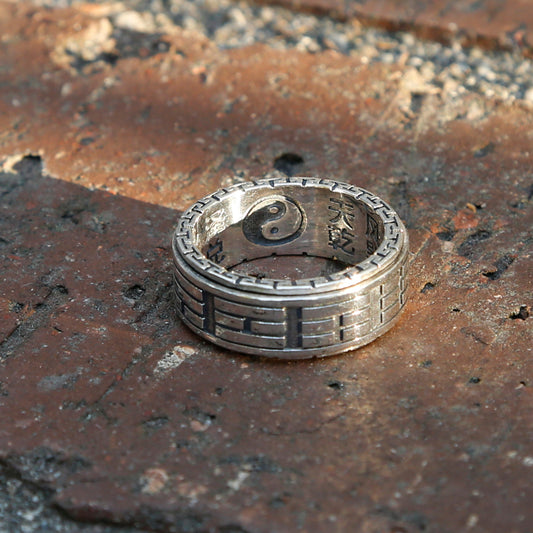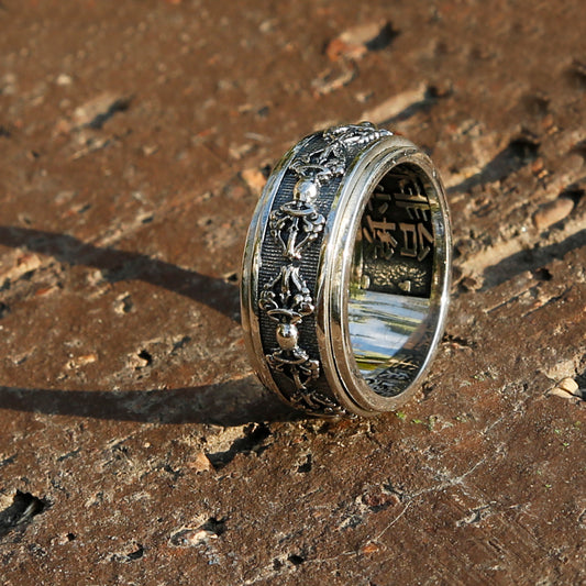 Lord Ganesha Buddhism Sterling Silver Mens Ring, India Buddhist Prayers Om Ring, Mens Meditation Ring (J)