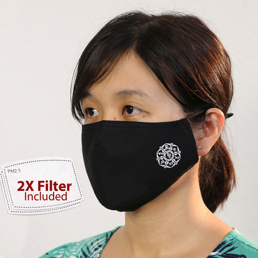 Zen Buddhism Adjustable Washable Cloth Face Mask Covering, 2-Layer with 2 Extra Filters