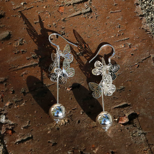 Butterfly Silver Boho Chic Dangle and Drop Earrings, Bali Style Jewelry (R)