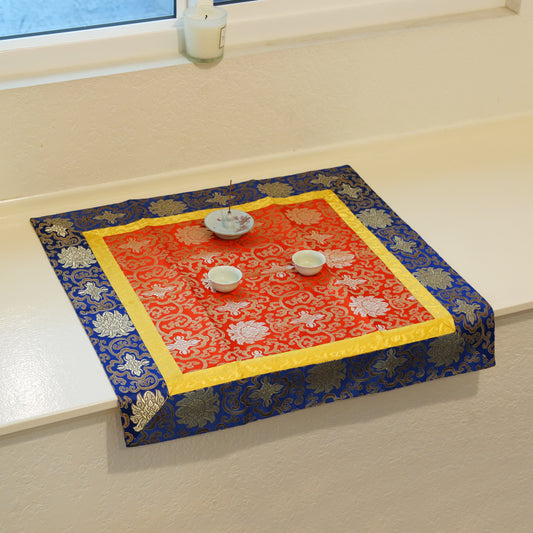 Tibetan Lotus Buddhist Silk Brocade Shrine Table Cover Altar Cloth, 28”X28”, Yellow or Red