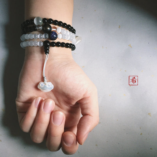 Yin Yang Black Onyx and Cats Eye 108 Beads Bracelet/Necklace