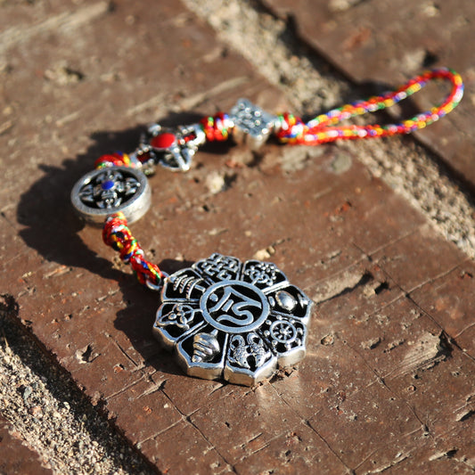 Tibetan Ashtamangala Protection Charm Keychain Lanyard, Chinese Bagua Rear View Mirror Charm, Buddhist Feng Shui Car Charm (R)