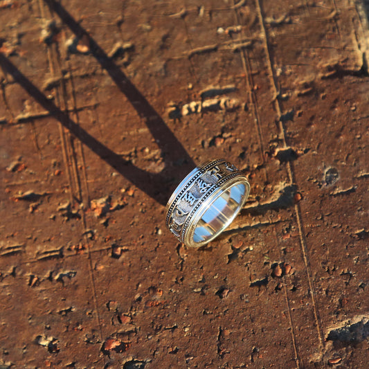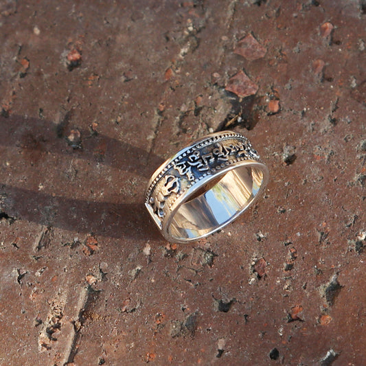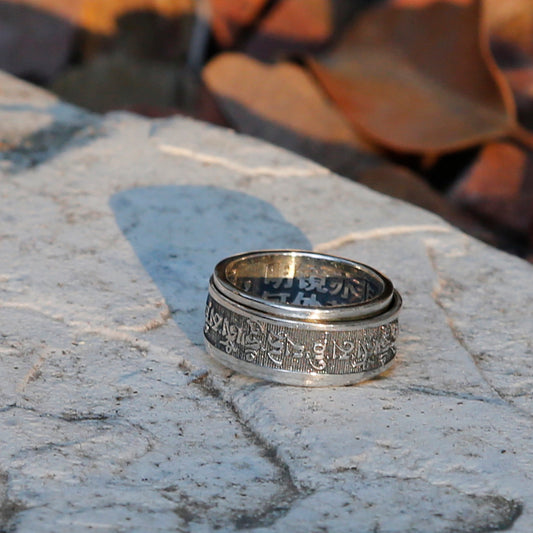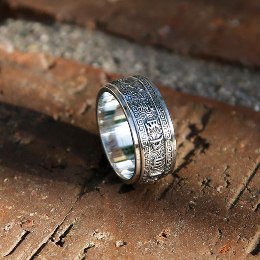 Tibetan Buddhist Prayer Silver Spinner Ring, Mens Meditation Ring, Buddhist Symbol Ring (C)