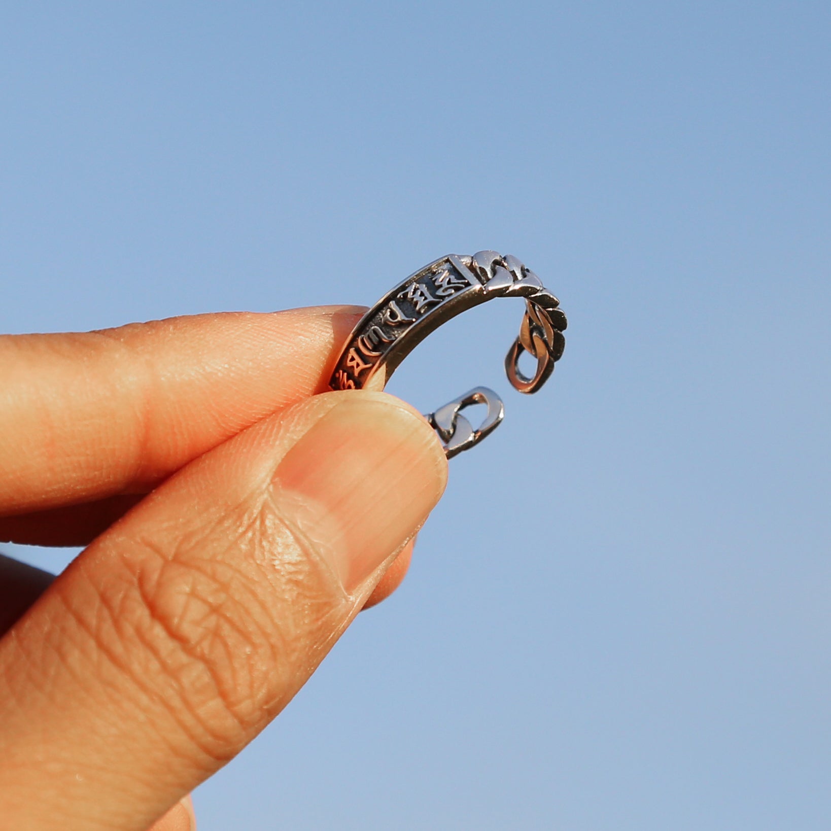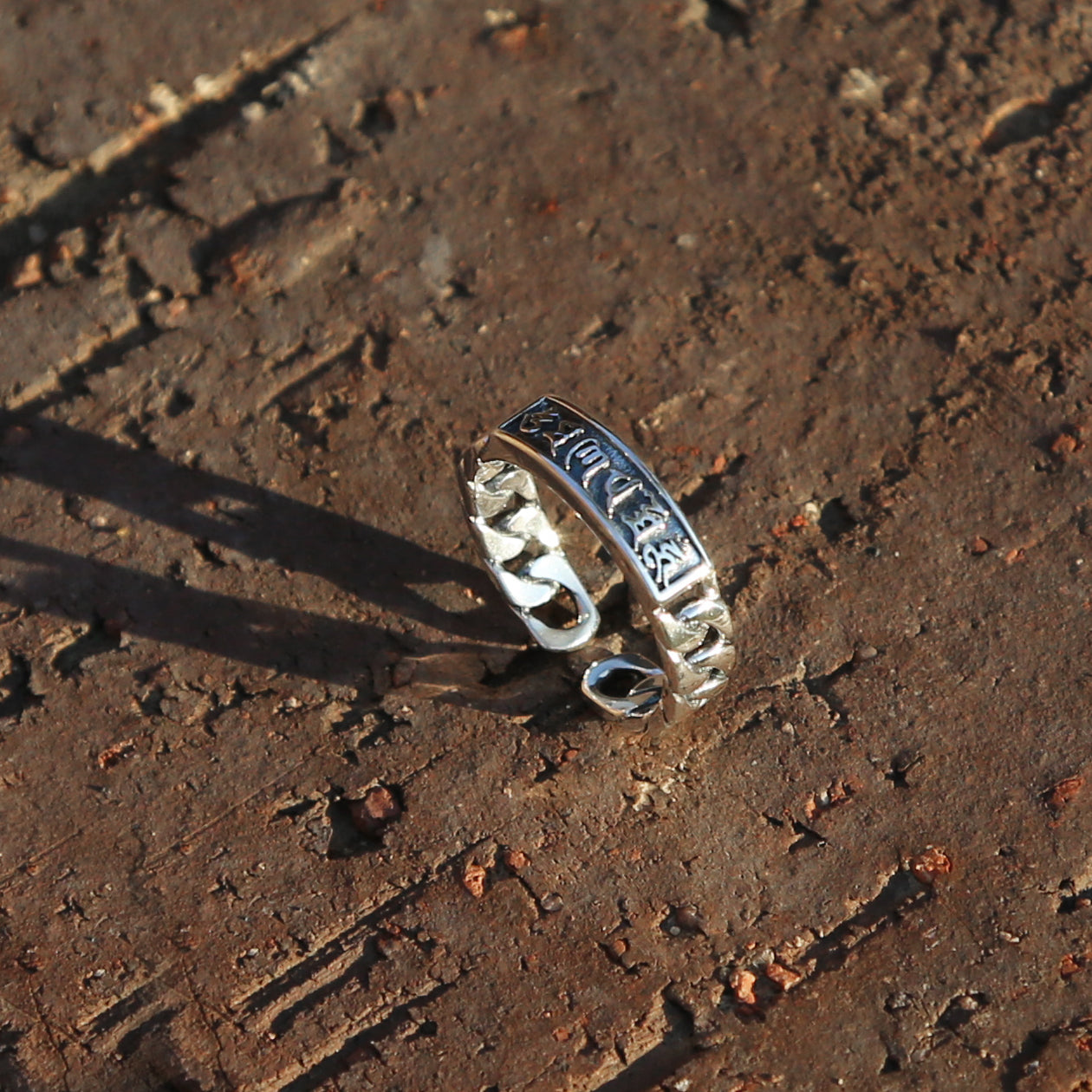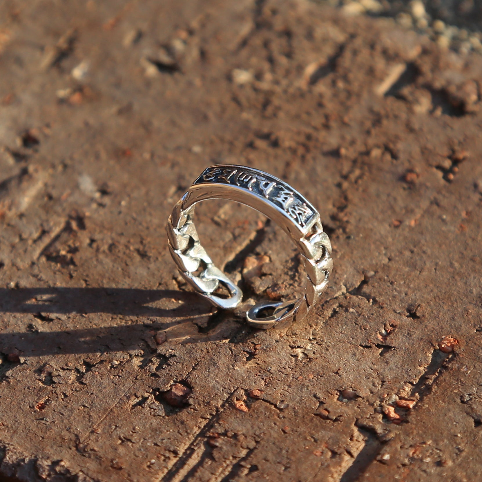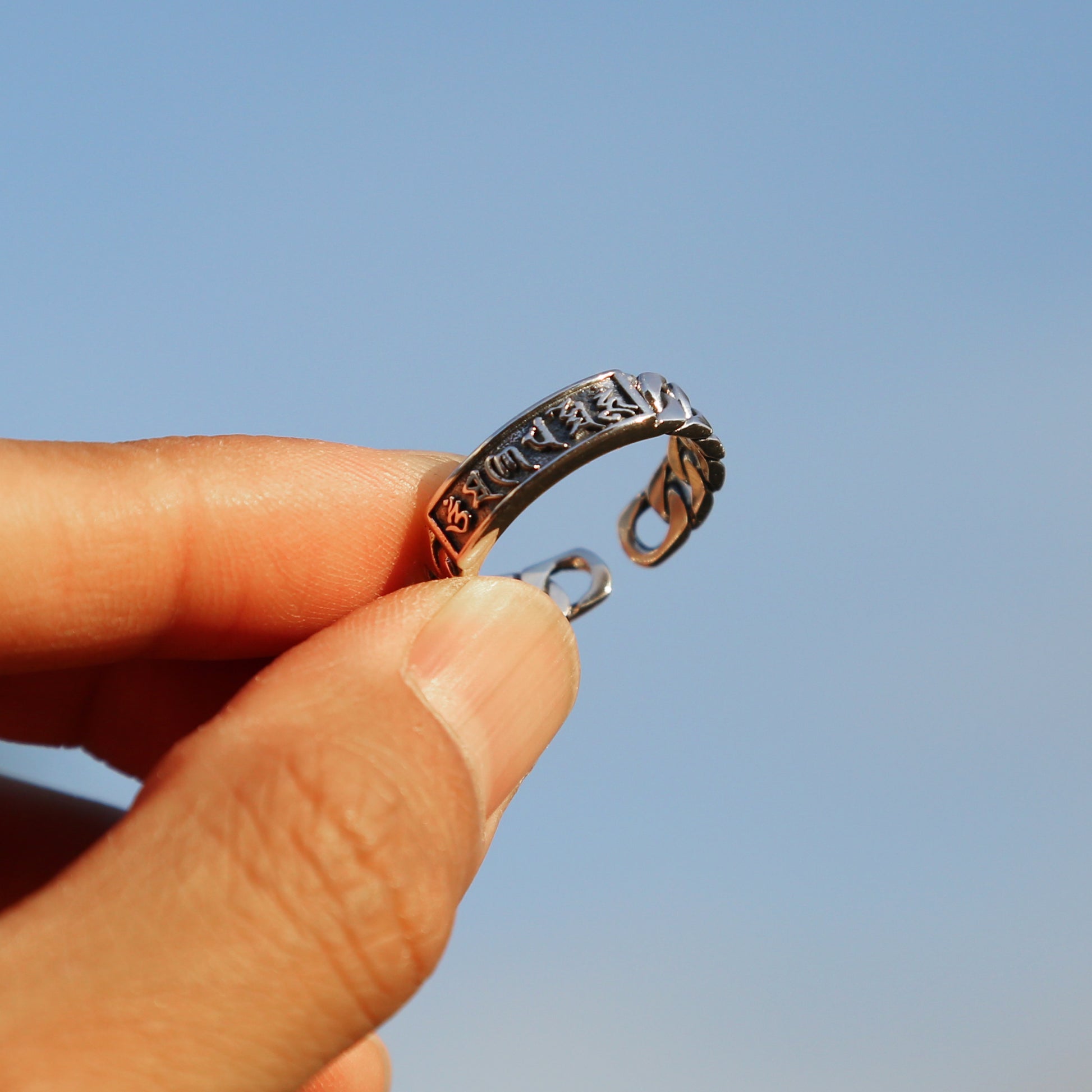 Adjustable Chain-style Buddhism Prayer Symbol Sterling Silver Ring, Tibetan Buddhist Ring, Mens Ring, Meditation Om Ring, Chinese (S)