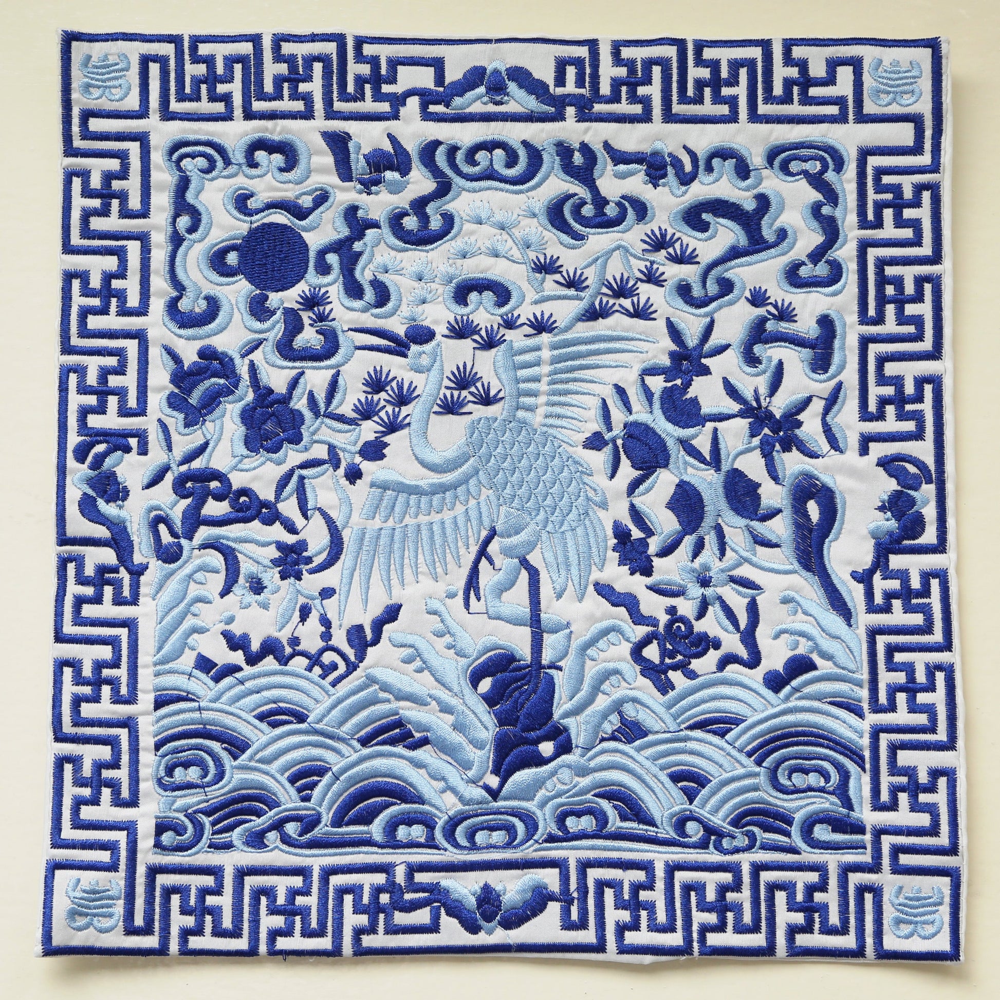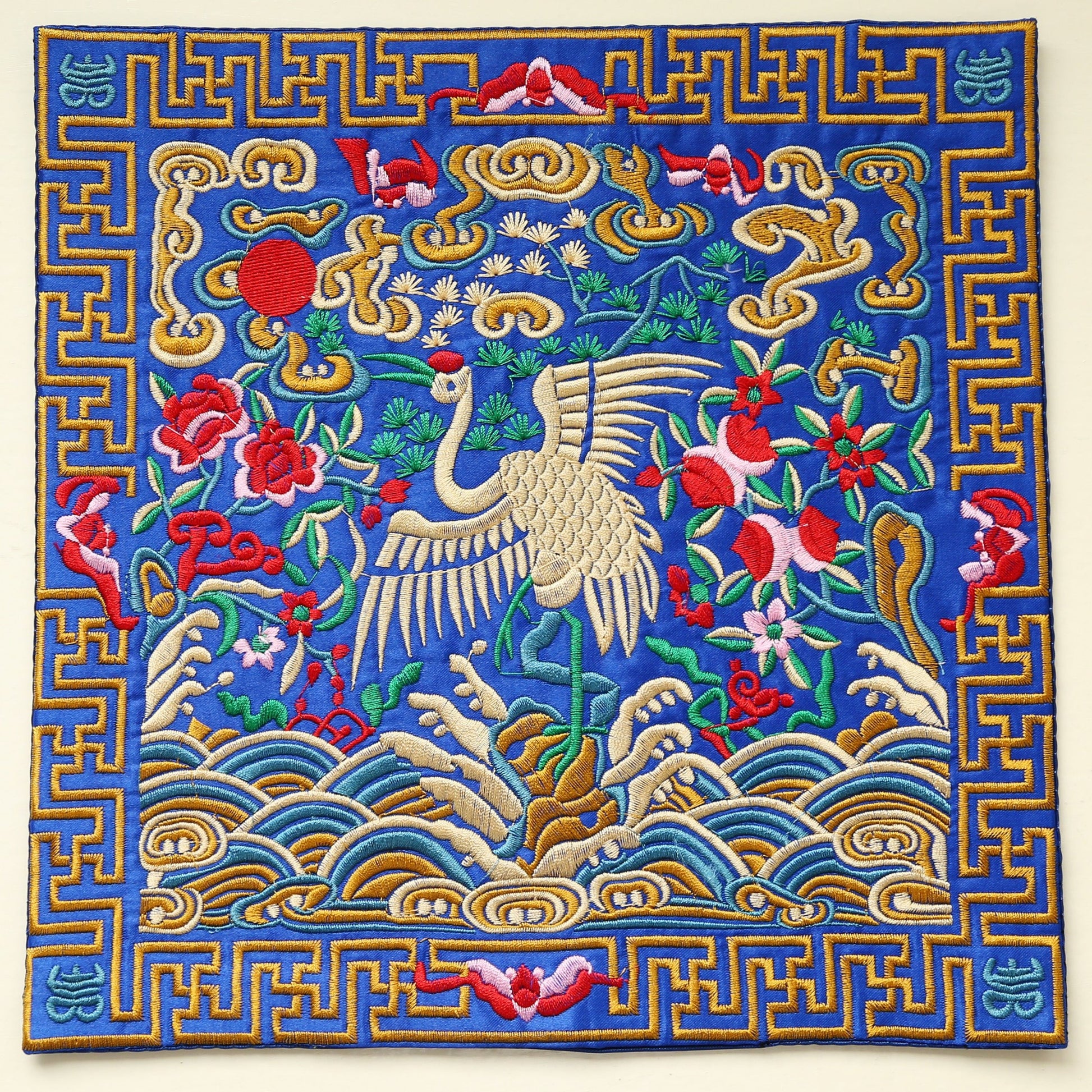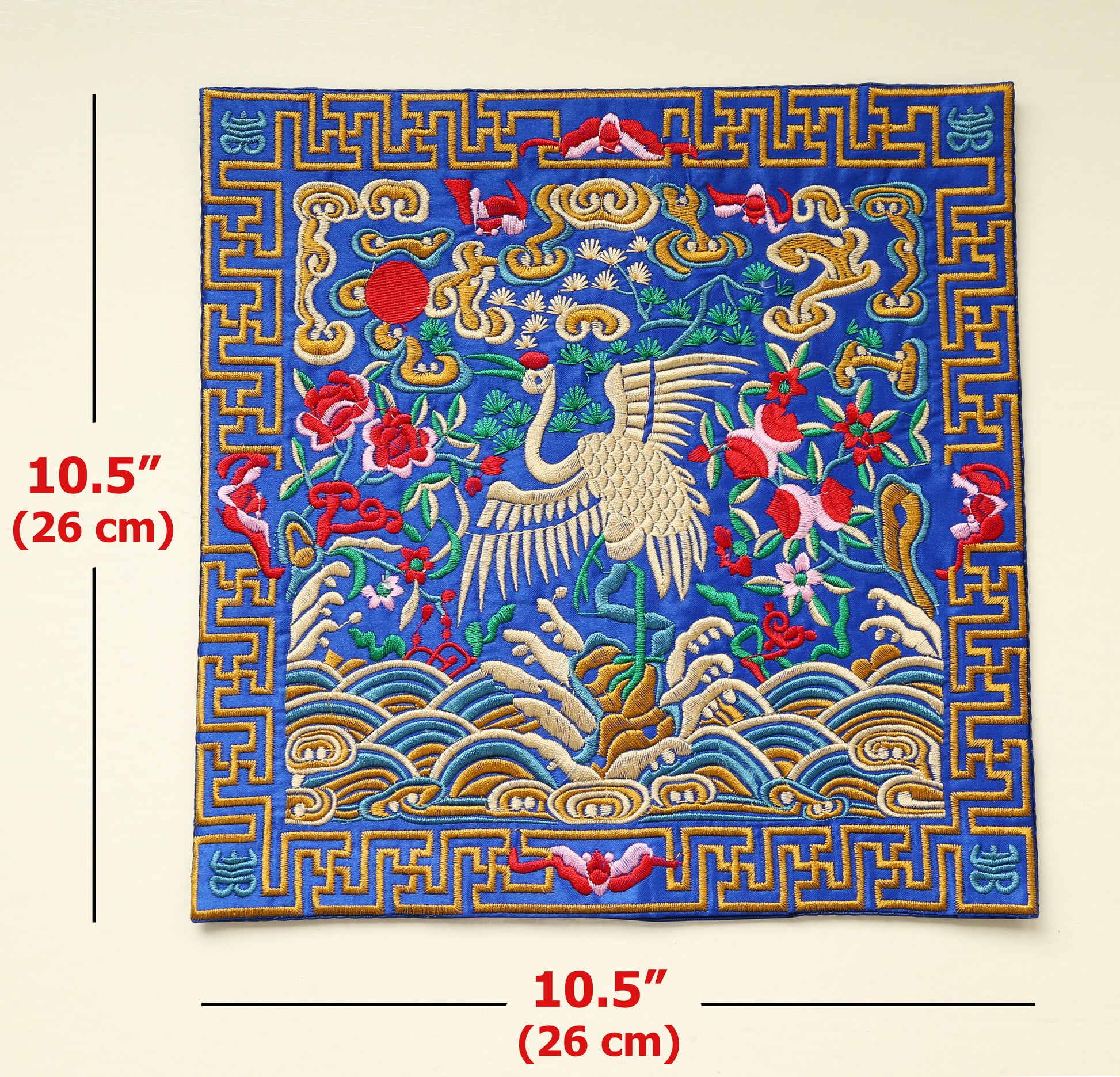 Chinese Japanese Crane Embroider Silk Brocade Shrine Table Cover Altar Cloth, 10.5”X10.5”, White/Blue/Red
