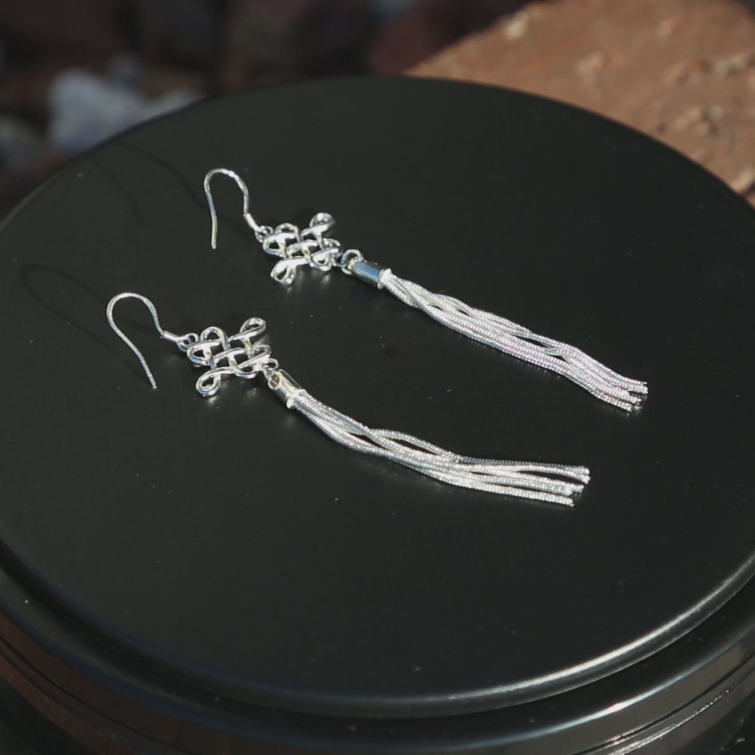 Chinese Lucky Knot Boho Chic Dangle and Drop Silver Earrings (R)