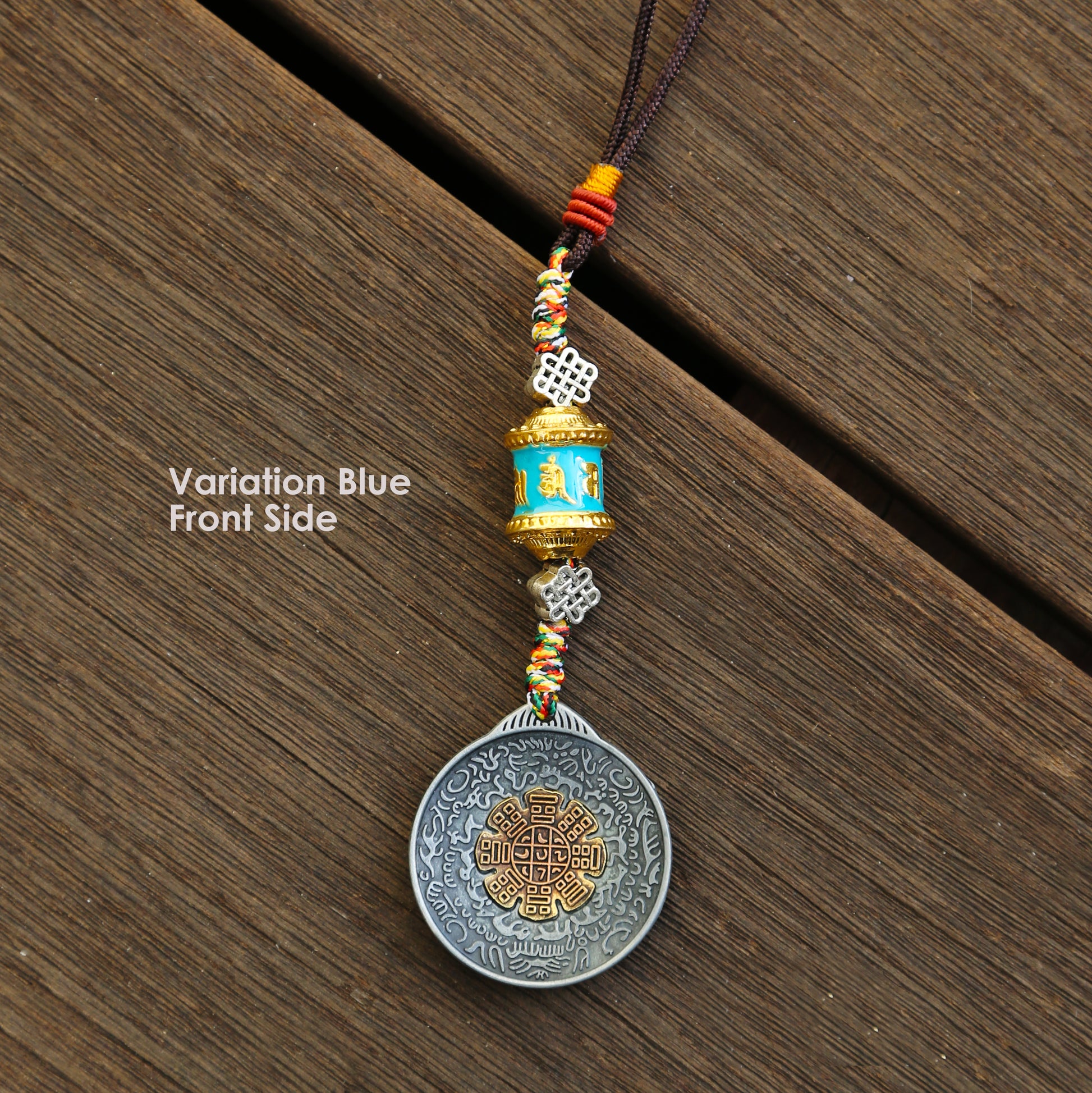 The Tibetan Protective Talisman is to provide protection and good fortune for the processor. On this Talisman, there are the 12 Zodiacs and the ancient Chinese symbols which represent nature and human elements bringing good fortunes and staying away from bad luck. This accessory can be used as a keychain or a lanyard to hang on your backpack. In some Asian countries, this talisman is widely used to boost people’s good fortune.A prayer wheel is a cylindrical wheel (Tibetan: འཁོར་ལོ།, Wylie: khor lo) on a spindle made from metal, wood, stone, leather, or coarse cotton. Traditionally, a mantra is written in Tibetan language, on the outside of the wheel. The mantra Om mani padme hum is most commonly used