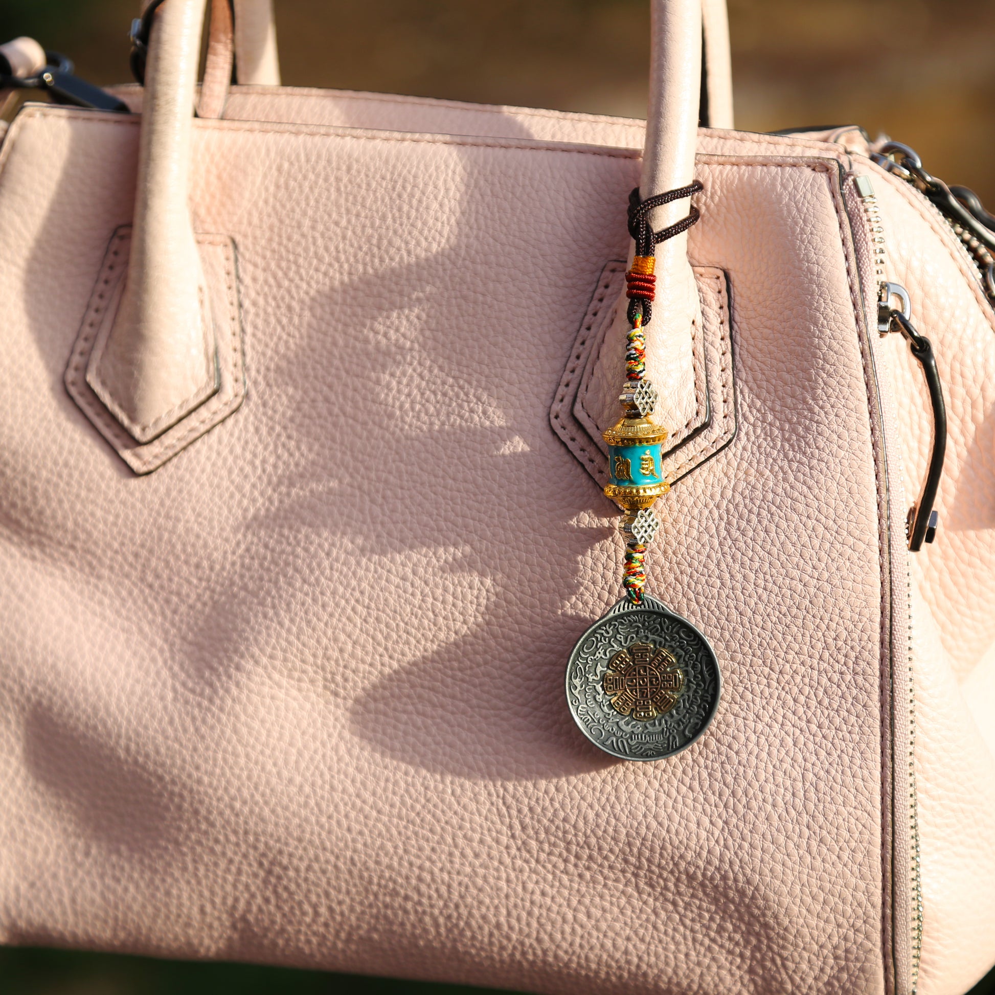 Colored Talisman & Prayer Wheel Protection Zipper Charm, Tibetan Style Keychain, Chinese Bagua Car Charm (T)