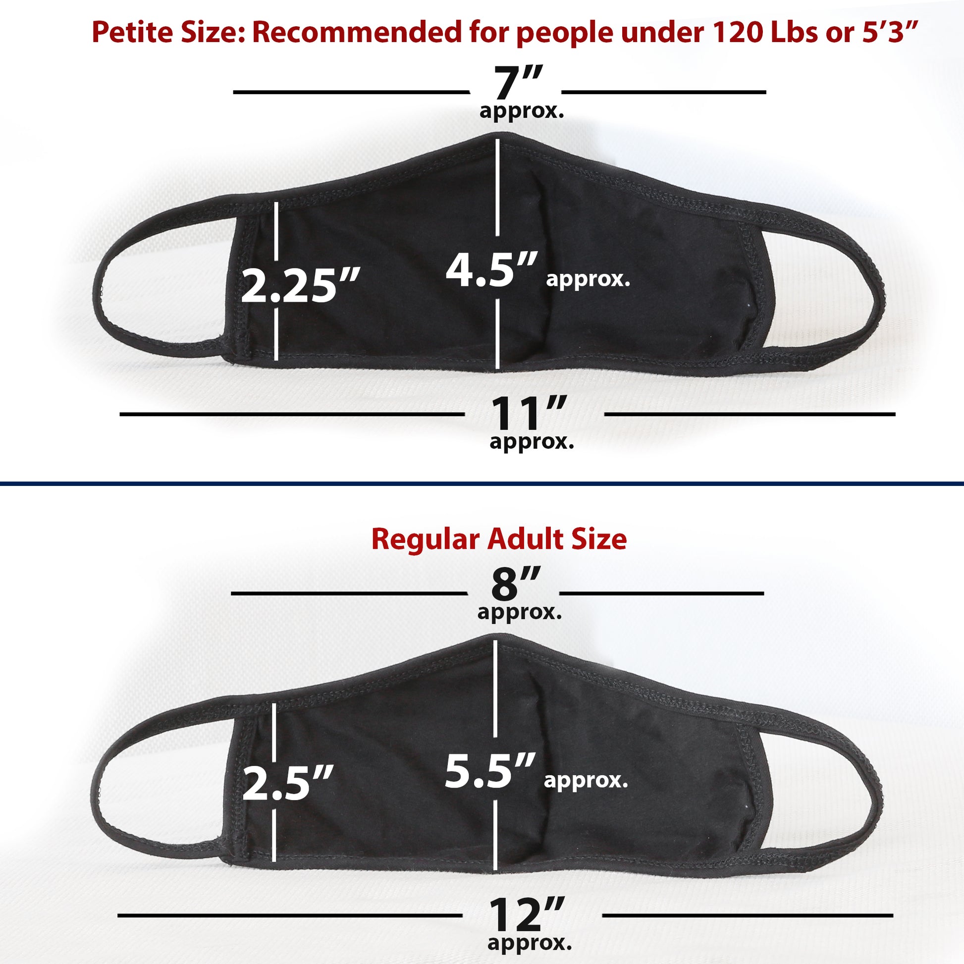 Petite (Recommended for people with small face, typically under 120 Lbs or 5'3") :