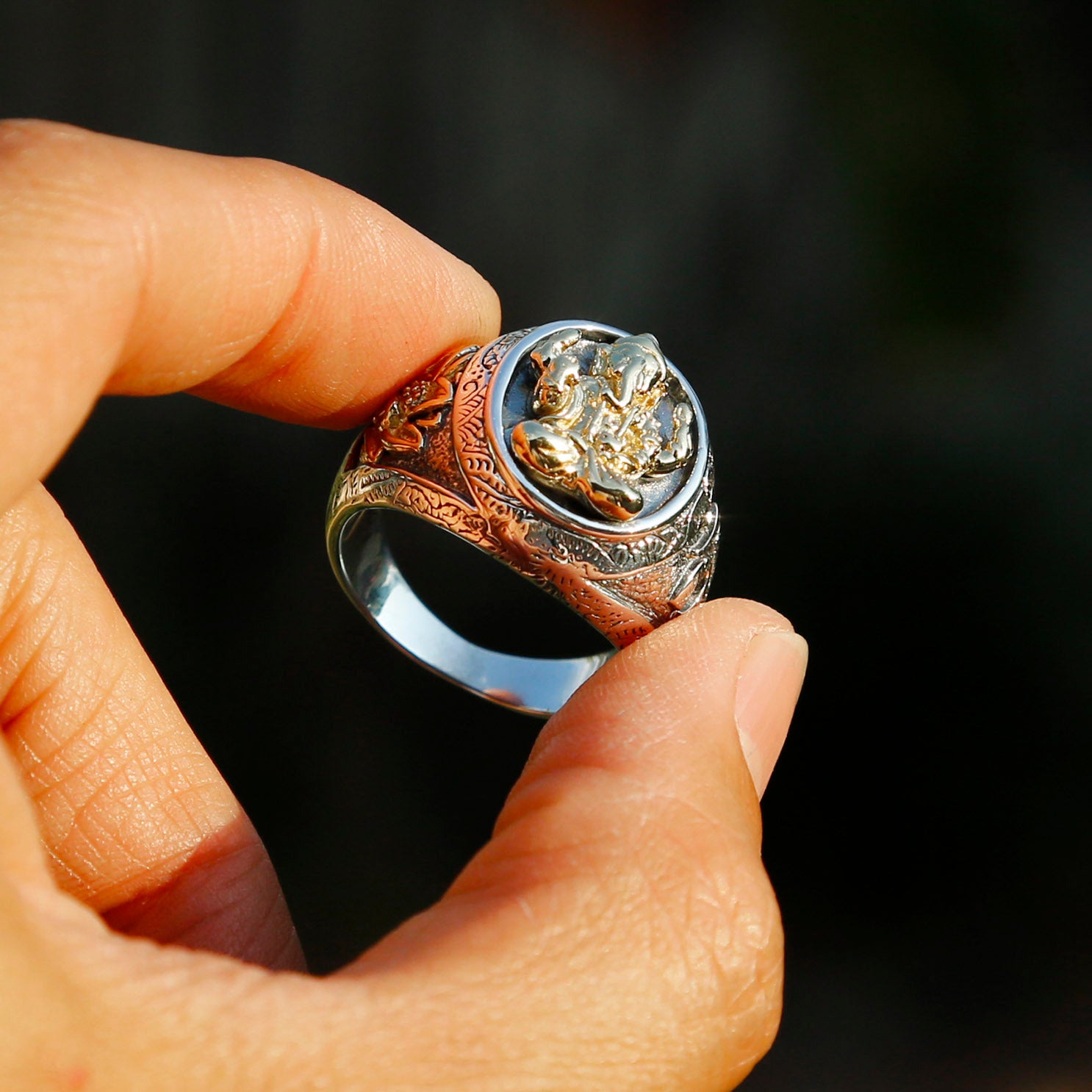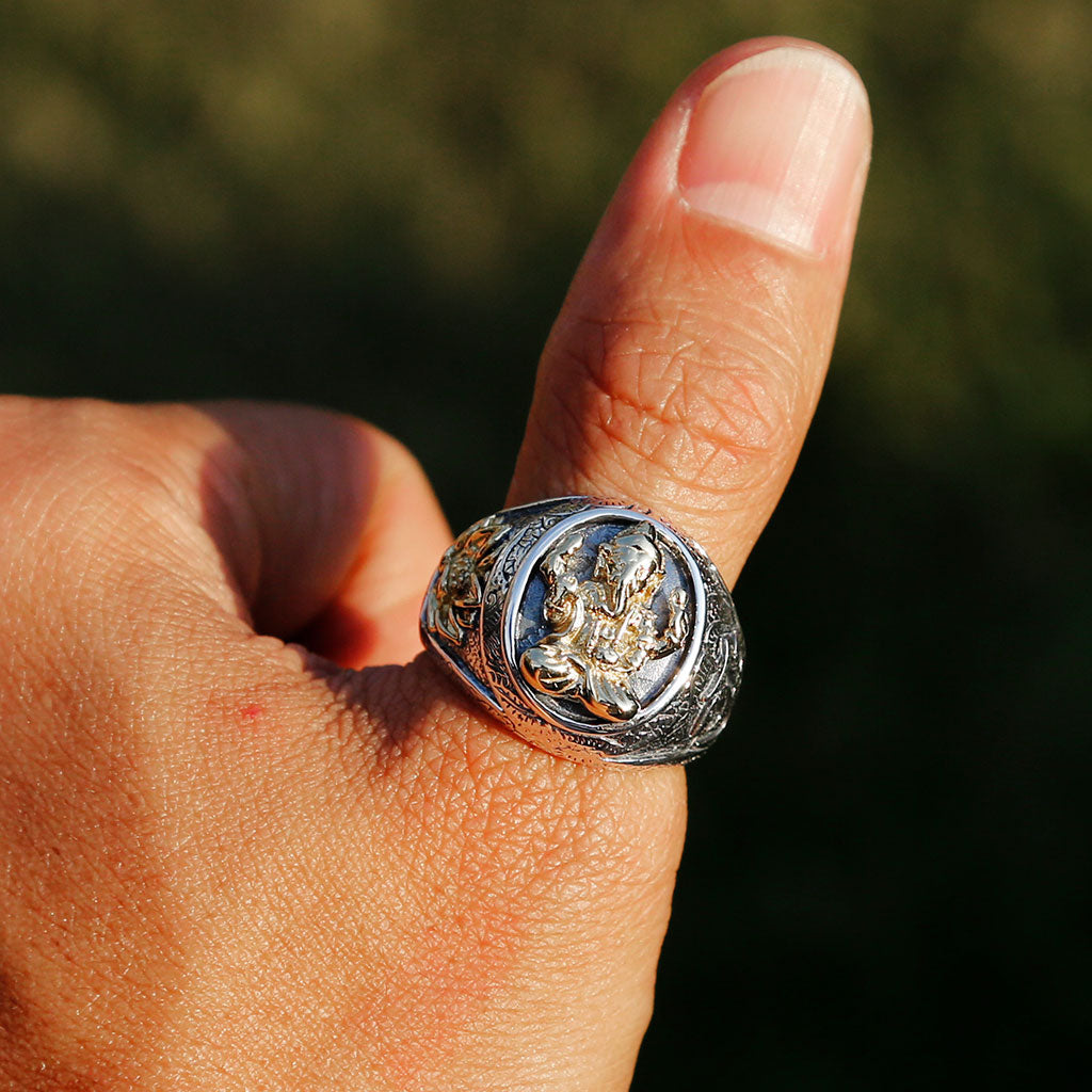 Embrace the essence of Hindu teachings and enhance your style with our Lord Ganesha Buddhism Sterling Silver Men's Ring.
