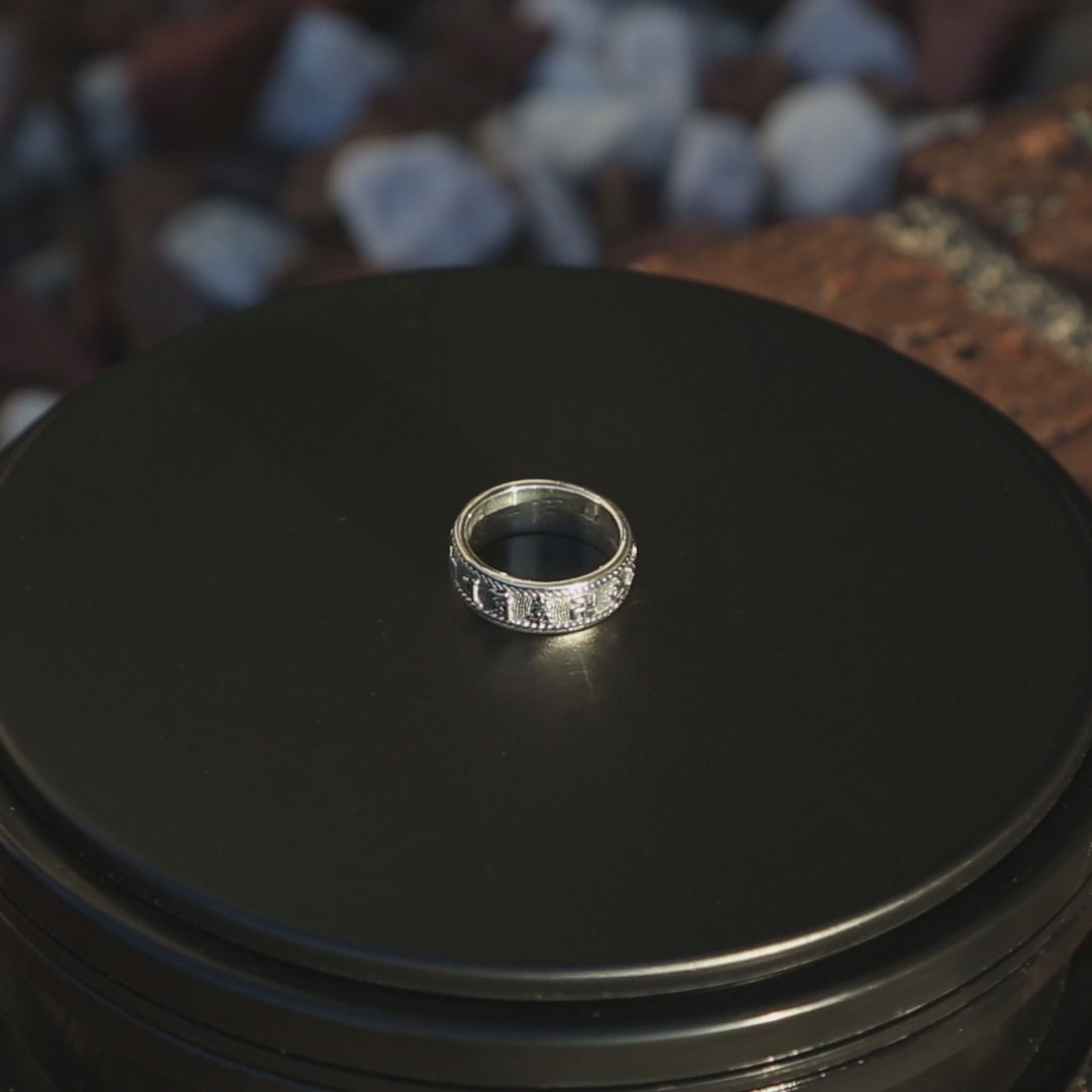 Embrace the essence of Buddhist spirituality and enhance your style with our Embossed Buddhist Prayers and Swastika Sterling Silver Ring.