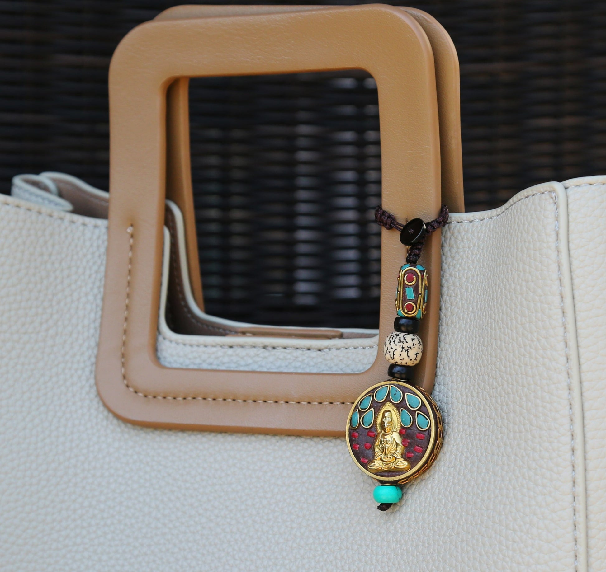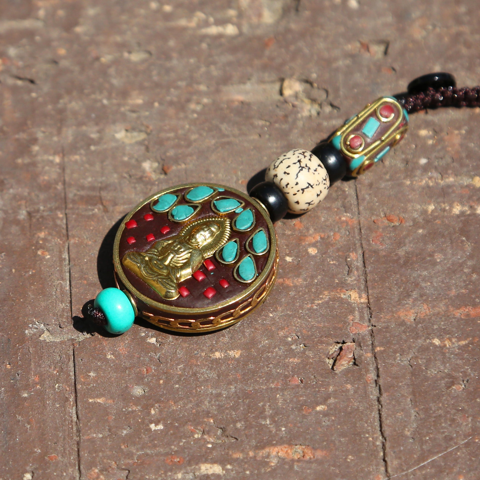 Spiritual Symbolism: Adorned with a golden Buddha decoration on a leather tag, this charm represents protection and positive energy, aligning with Tibetan Buddhism principles.