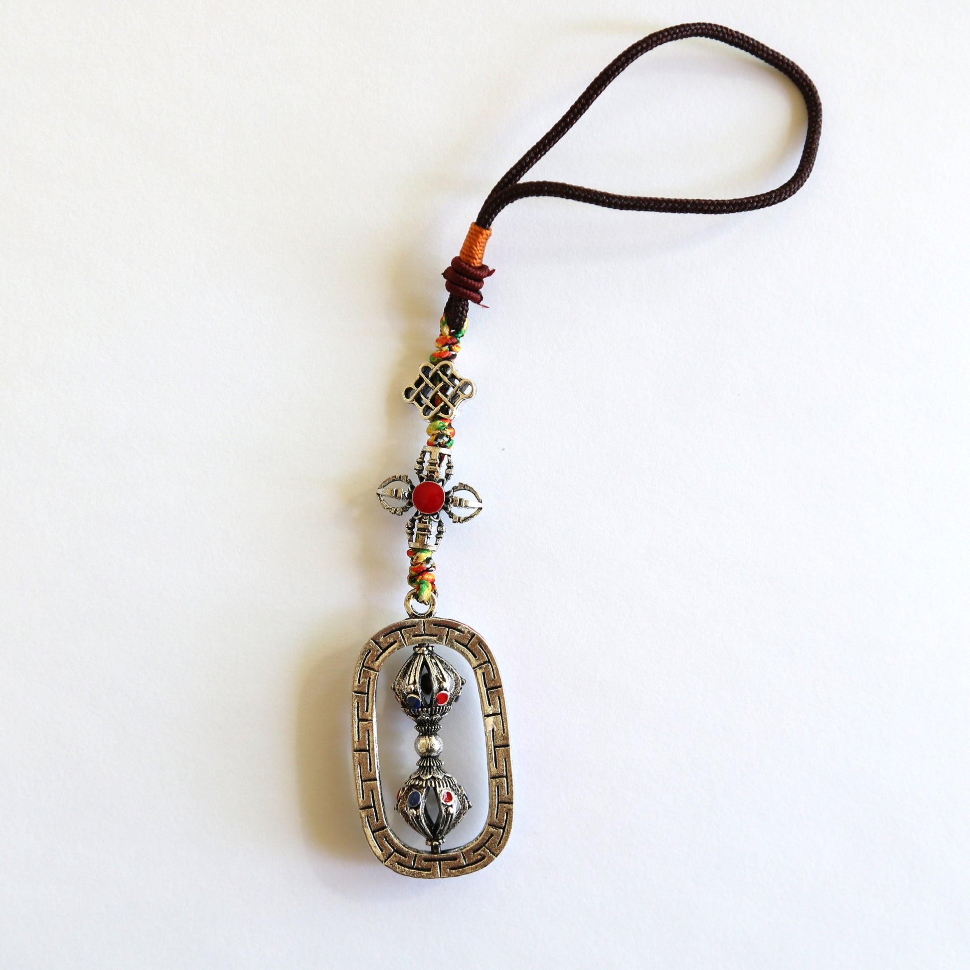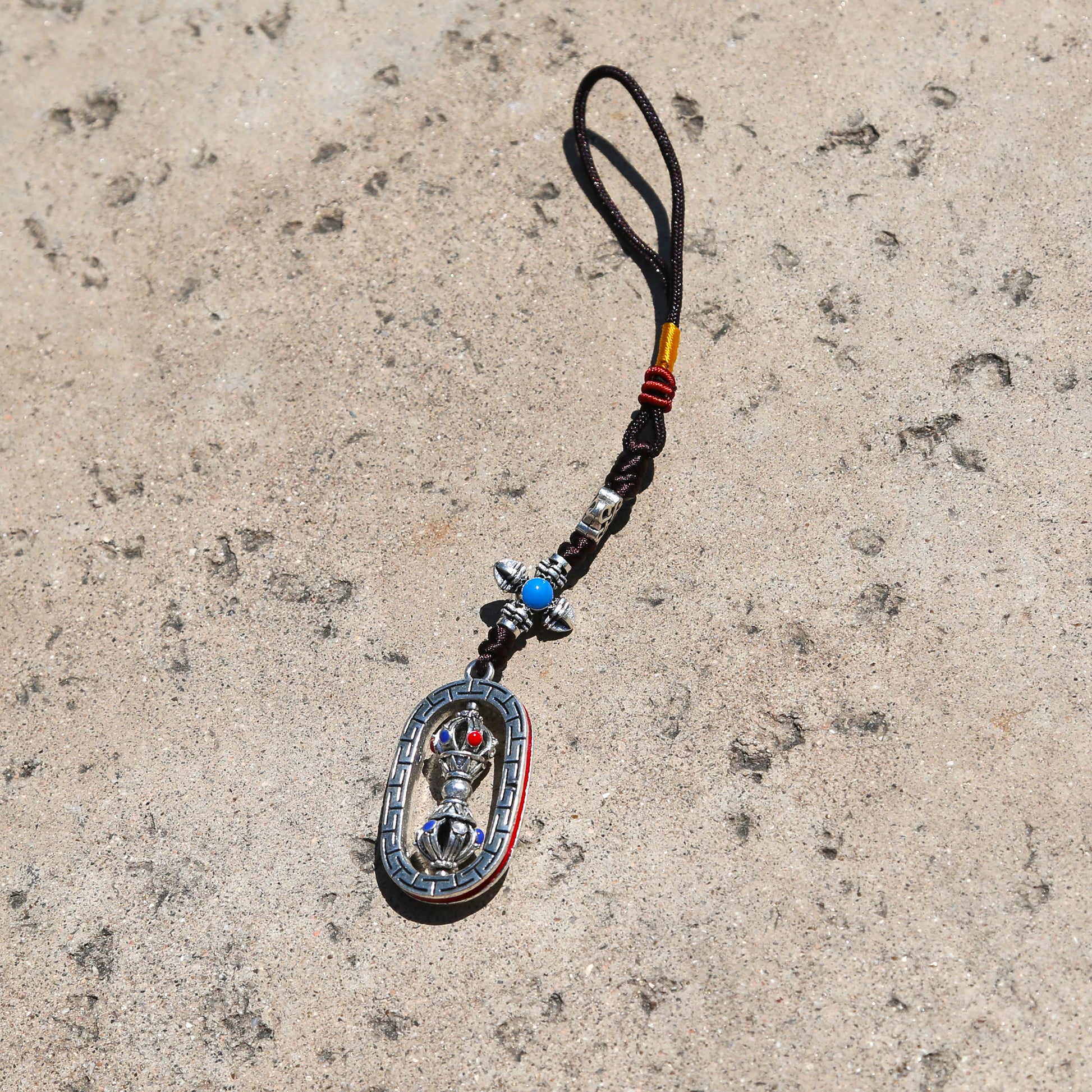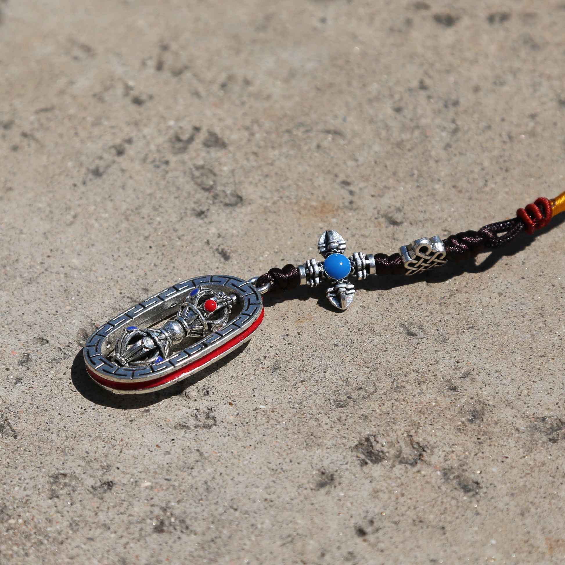 Spinning Tibetan Buddhist Vajra Protection Zipper Charm, Buddhism Rearview Mirror Charm, Tibetan Style Keychain Car Charm (R)
