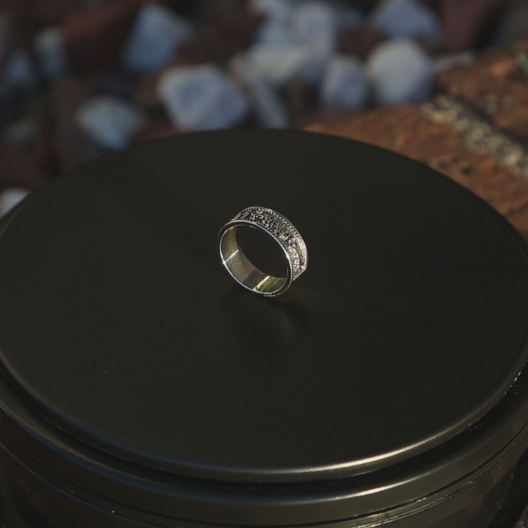 Introducing our Tibetan Buddhist Prayers Vajra OM Silver Ring, a men's meditation ring that combines traditional Buddhist symbolism with modern craftsmanship. This ring features the Tibetan Buddhist prayers "Om Mani Padme Hum" beautifully embossed around the band, representing simplicity and essentialism. The two Vajra symbols flanking the prayers further enhance its spiritual significance.