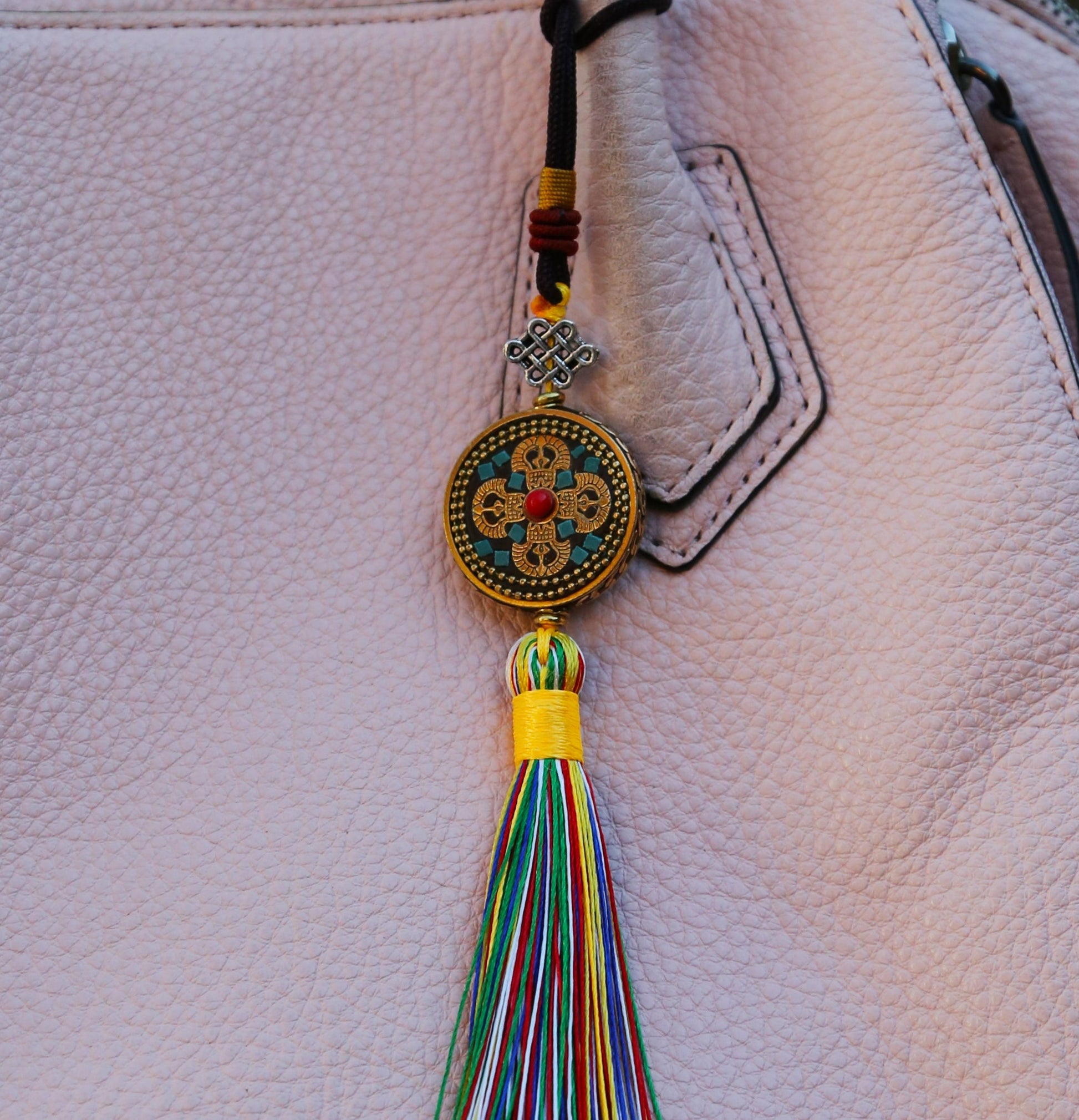 Enhance your daily life with our Tibetan Buddhist Vajra Color Tassel Protection Keychain Zipper Charm, a versatile accessory that combines spirituality and functionality. This Tibetan style keychain serves multiple purposes: as a zipper charm, car rearview mirror ornament, lanyard accessory, or simply as a decorative hanging piece.
