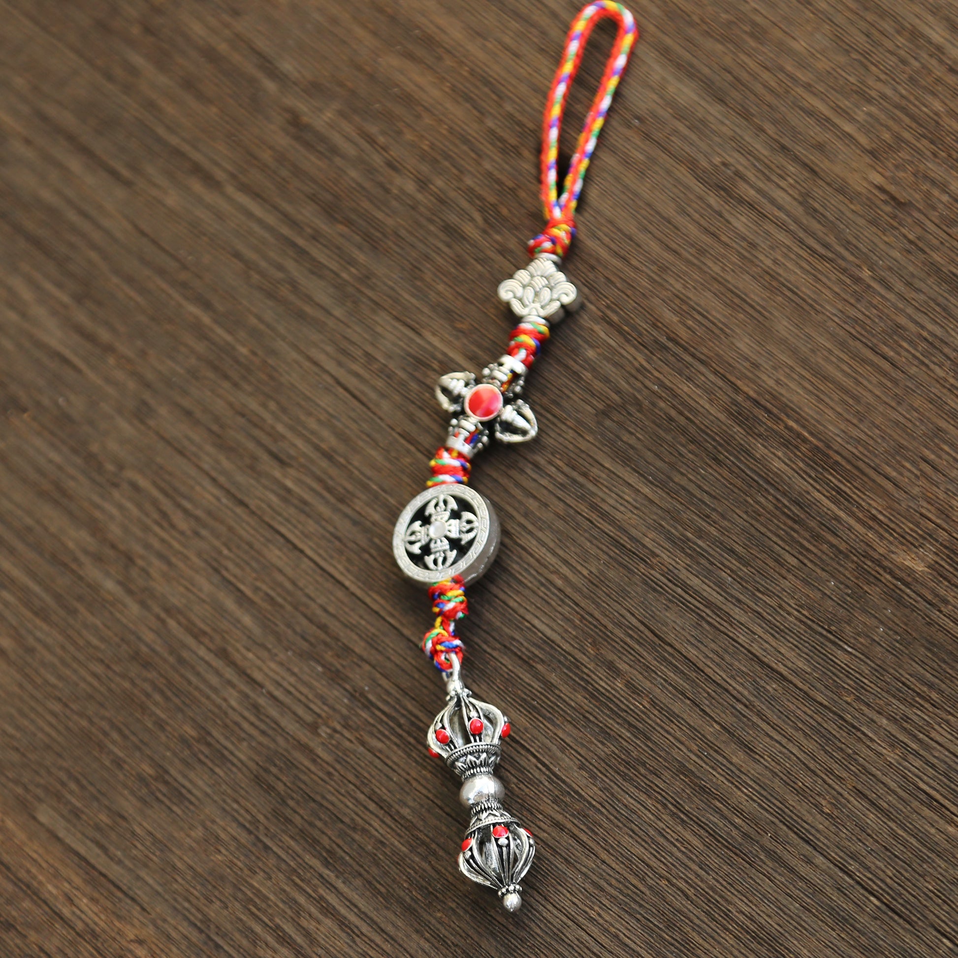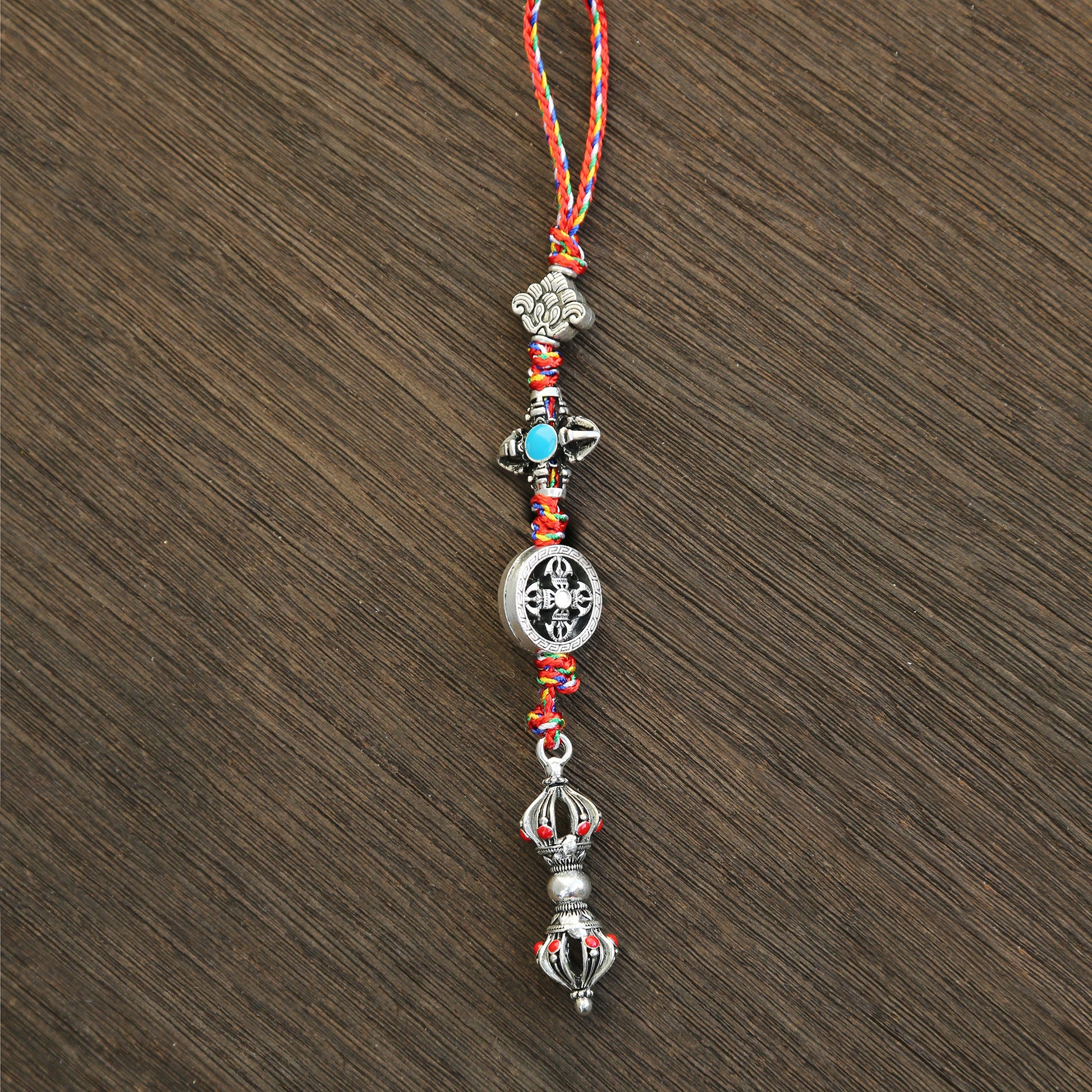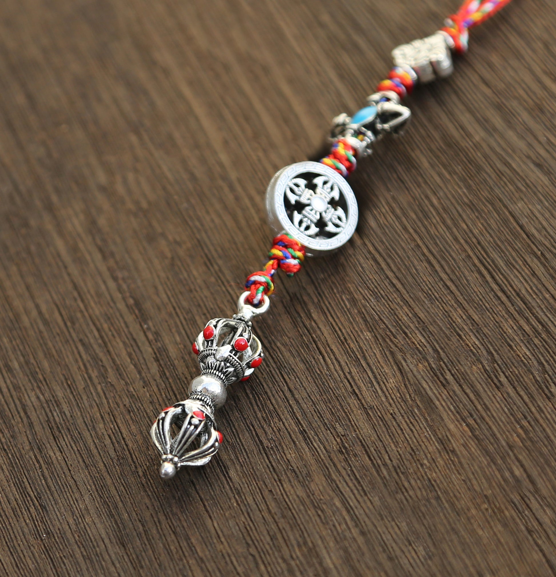 Tibetan Buddhist Vajra Protection Zipper Charm, Buddhism Rearview Mirror Charm, Tibetan Style Keychain Car Charm (R)