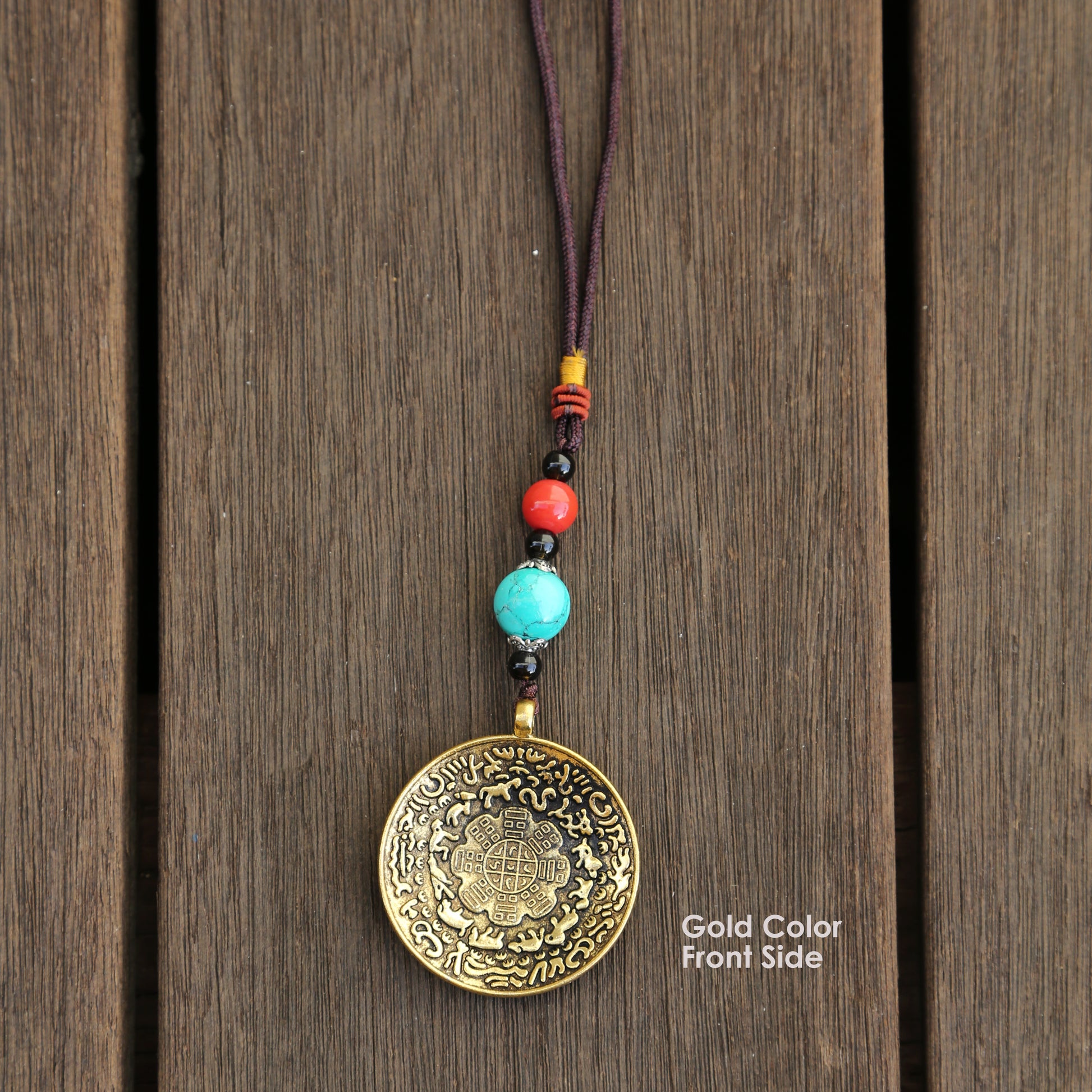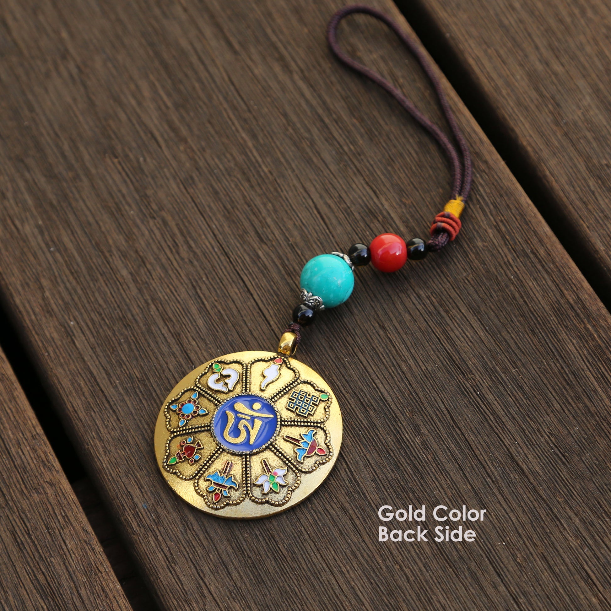 The Tibetan Protective Talisman is to provide protection and good fortune for the processor. On this Talisman, there are the 12 Zodiacs and the ancient Chinese symbols which represent the nature and human elements bringing good fortunes and staying away from bad luck. This accessory can be used as a keychain or a lanyard to hang on your backpack. In some Asian countries, this talisman is widely used to boost people’s good fortune.Ashtamangala, The eight auspicious symbols of Tibetan Buddhism consist of: parasol, pair of fishes, treasure vase, lotus, white-spiraling conch shell, endless knot, victory banner, and golden wheel.
