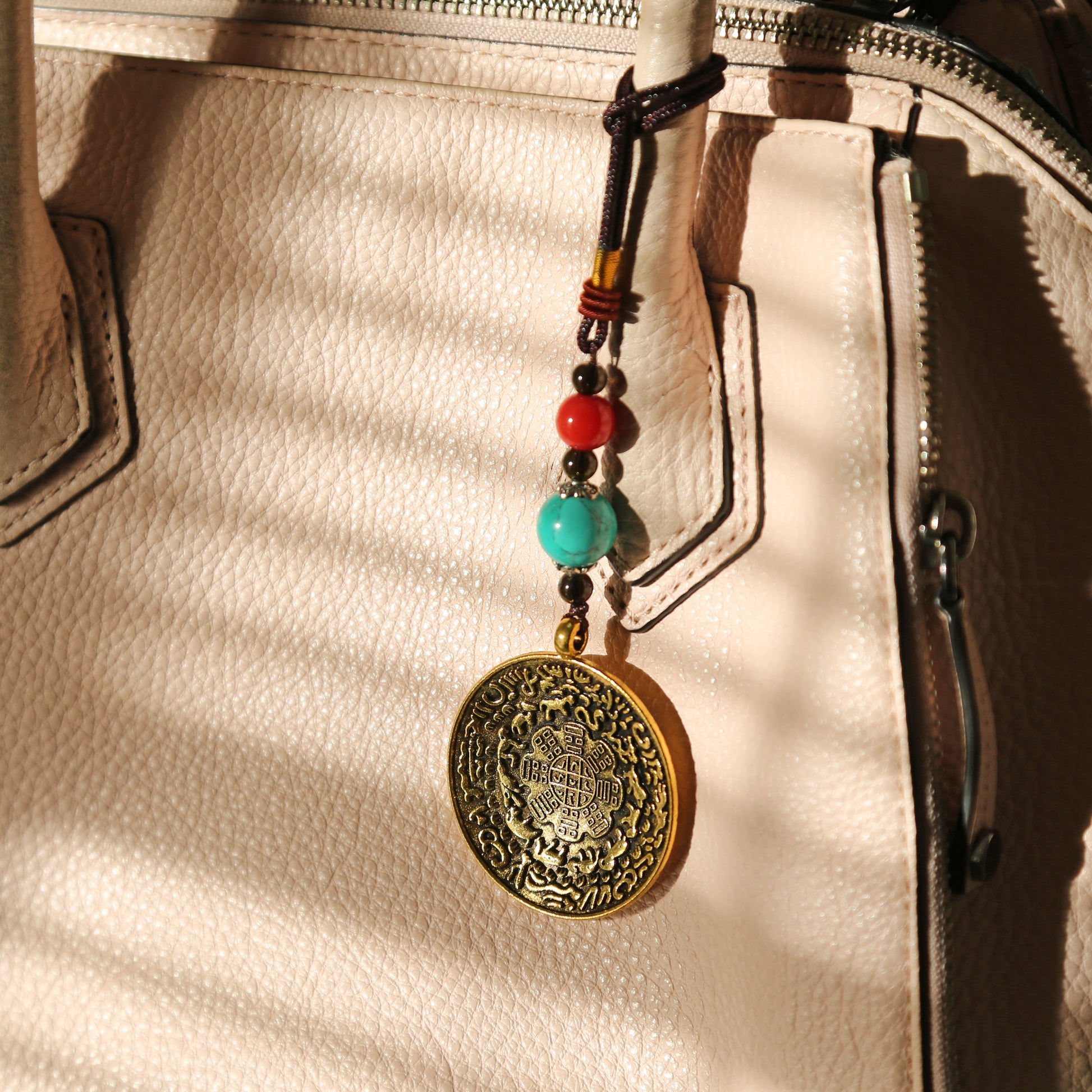 Keywords: Tibetan Style Keychain, Chinese Bagua Rear View Mirror Charm, Meditation Car Charm, Yoga Accessories