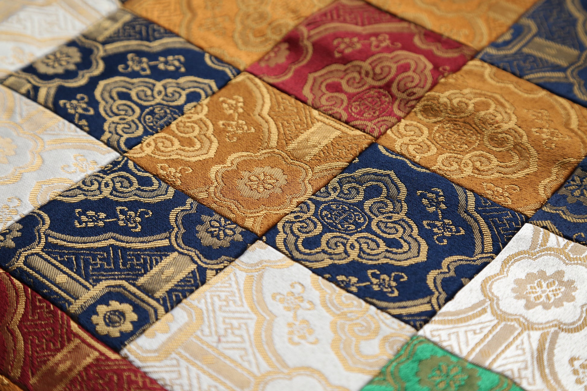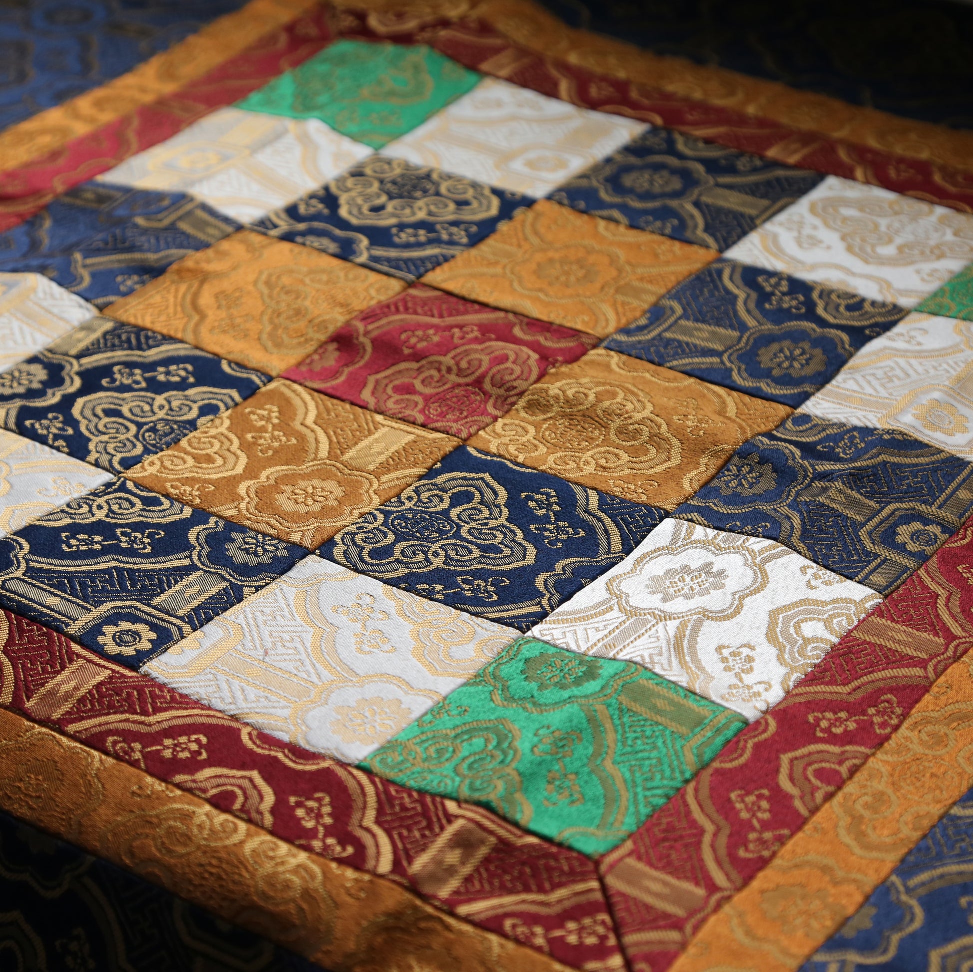 Elevate your spiritual practice and home decor with this elegant Tibetan patchwork altar cloth, embodying the rich heritage and symbolism of Tibetan Buddhism.