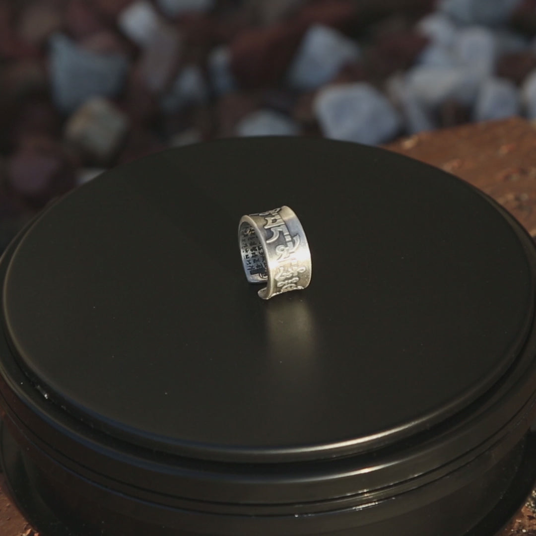 Keywords: Buddhist Silver Ring, Mens Ring, Buddhist Om Ring, Chinese Symbol Ring, Nepal, Man Meditation Jewelry